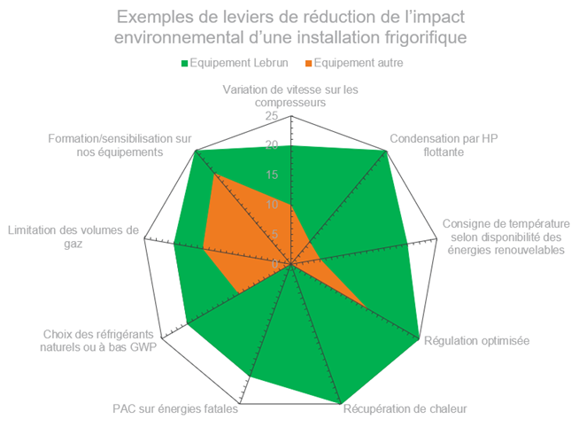 Réduction de l’impact environnemental de vos installations : Lebrun est votre partenaire pour vos objectifs de protection de l’environnement. Par la recherche de la meilleure efficience énergétique, par le choix du réfrigérants au GWP le plus bas, par la réduction des volumes de gaz nécessaires, par la sélection de matériel moins bruyant,… Lebrun vous accompagne dans les défis environnementaux d’aujourd’hui et de demain. Grâce à son expérience, Lebrun est capables de transformer ces contraintes environnementales en avantages opérationnels et économiques.